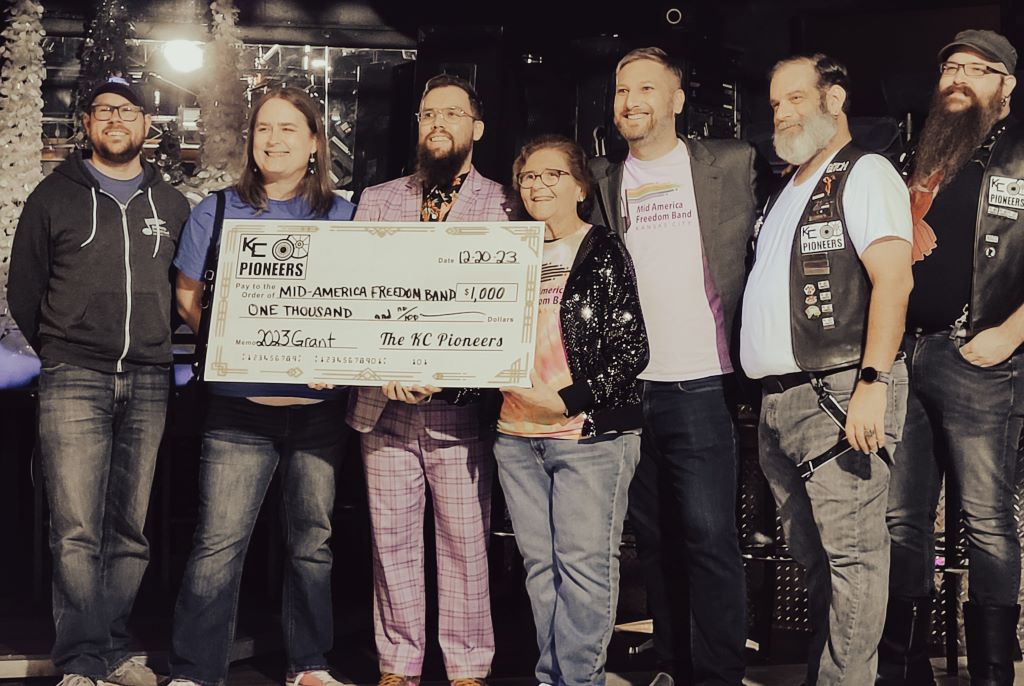 The KC Pioneers believe that building a stronger LGBTQ+ and leather community takes more than words—it takes work. Whether we’re volunteering at coat check or offering unrestricted grants, we’re committed to uplifting causes that align with our values of inclusion, visibility, and care.