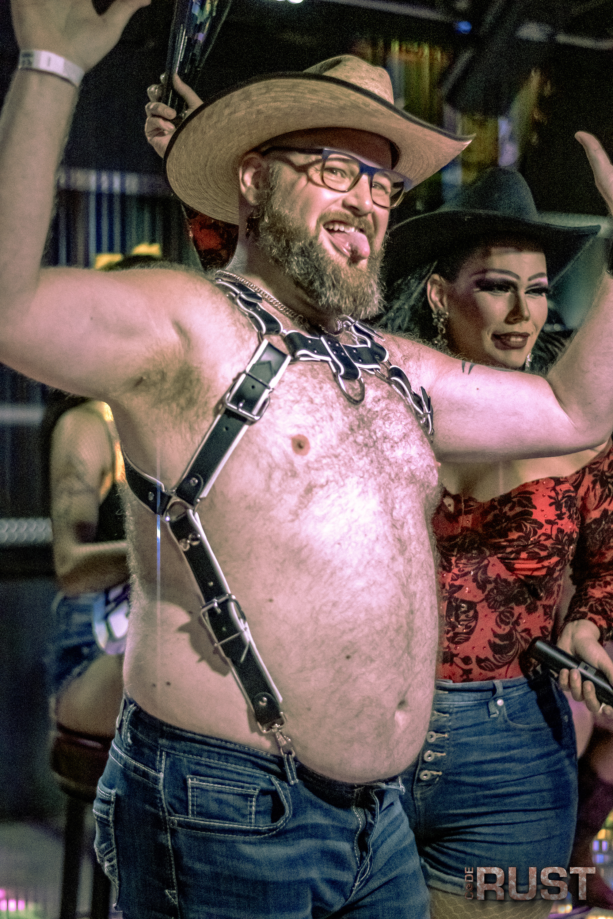 In June, the KC Pioneers kicked off CODE KC with RUST—a gritty, gear-heavy night inspired by the hanky code. Leather folx packed Missie B’s for bondage demos, cowboy heat, and a Saddle to Spur raffle benefiting MGRA. Drink busts flowed, flags flew, and the community showed up strong.